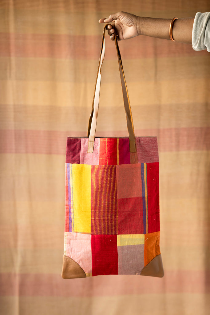 Our signature BORO Jhola Tote in upcycled patchwork of fabrics and leather handle is perfect to carry everyday, for that eco-grocery run or during your local errands. It is perfect to carry your books in your next book-haul or for just about-carrying-anything.