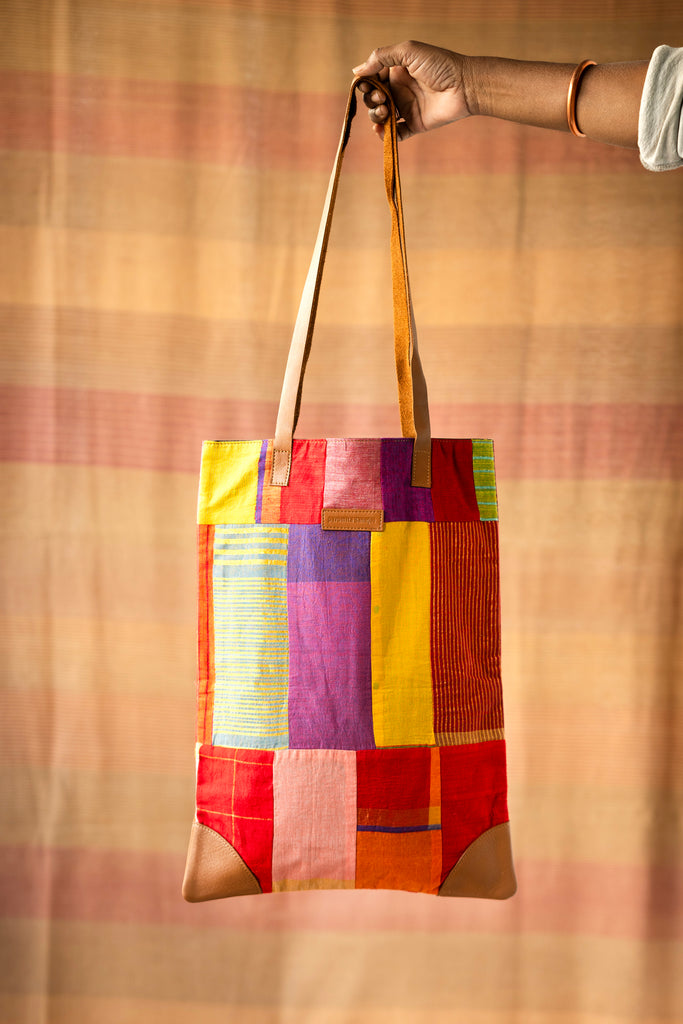 Each of our bags are made with leftover stories of past collections. Hence each bag is a single edition piece wherein the patched fabrics are composed and stitched based on the requirement of the particular bag pattern. No two bags will ever be the same or will have repeats. It is also an extension of our idea of sustainability.