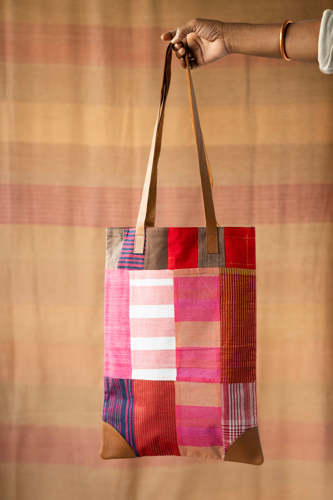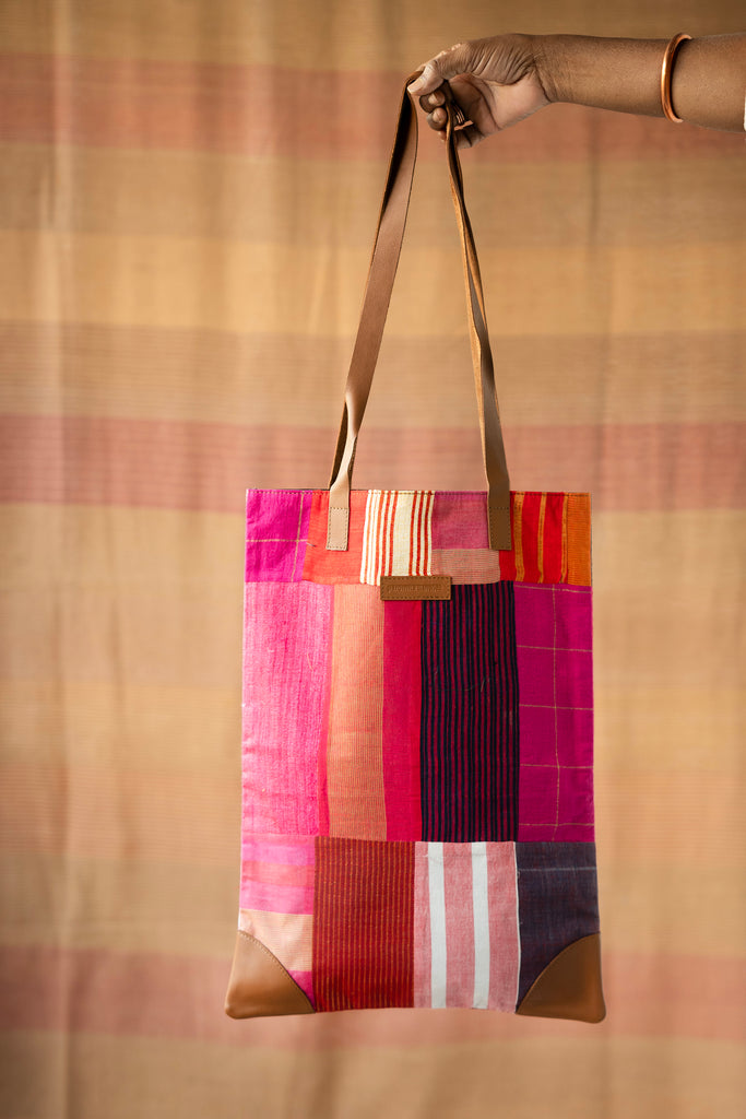 Our signature BORO Jhola Tote in upcycled patchwork of fabrics and leather handle is perfect to carry everyday, for that eco-grocery run or during your local errands. It is perfect to carry your books in your next book-haul or for just about-carrying-anything.